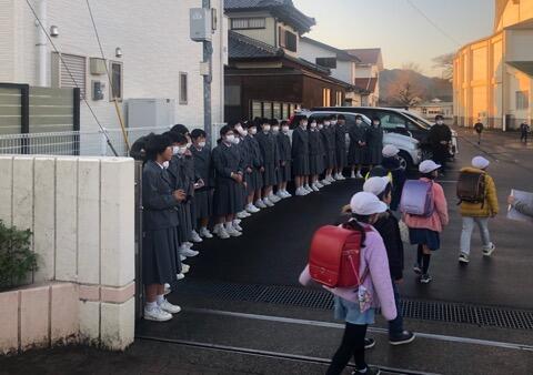 中学生が毎日交代で小学校に来て、元気な挨拶の声をかけてくれます。