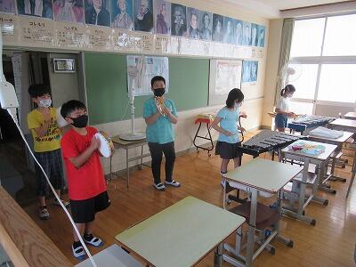 (感染対策のため歌を歌うことができないので、工夫しながら音楽の授業を進めています。)