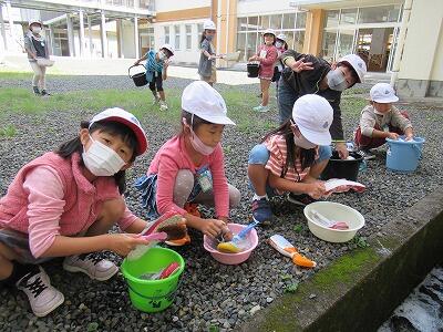 3年生が、総合的な学習の一環でウナギの放流を行いました。