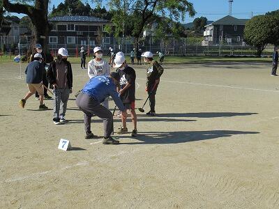 朝早くから多くの地域の皆様(約50名)においでいただき、にぎやかに実施することができました。グランドゴルフを初めて体験する子どもたちも多く、地域の方に優しく教えていただきながら楽しく活動することができました。子どもたちの楽しい思い出になったようです。
