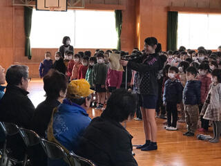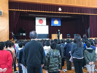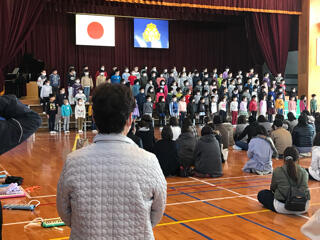 式典のアトラクションとして、4年生児童の合唱や合奏があり