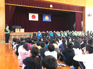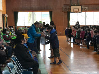 本日は、朝の見守りの後、43名の安全ボランティアの方が学校にお越しいただきました。校長先生より安全ボランティアの方の紹介をしていただき、安全ボランティアの代表の方のお話、6年生代表によるお礼のことば、全校児童の感謝の心を込めた花のプレゼントと、感謝の気持ちと温かい雰囲気の中で、すてきな感謝集会となりました。