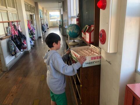 朝、福祉委員会の児童が児童玄関に立って、集めました。