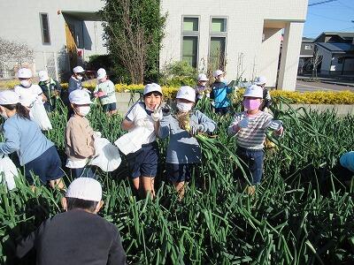 空飛ぶ新玉ねぎの収穫(3年生)