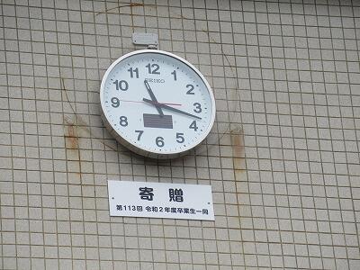 3月25日に卒業する6年生の保護者の皆様から、卒業の記念として屋外用掛け時計をいただきました。1・3年生教室のある北校舎の壁(児童玄関上)に設置していだきました。