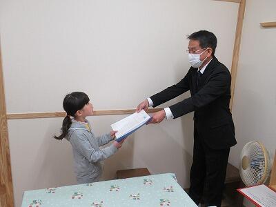 続いて、各学年の代表児童に修了証を渡しました。