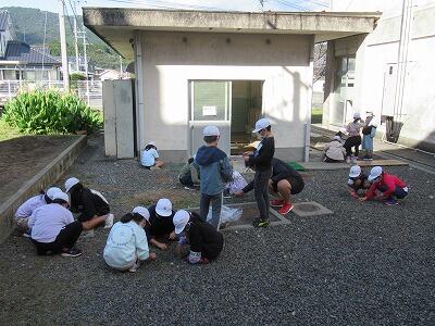 学年ごとに分かれ、それぞれの場所の草取りや石拾いをしました。いっしょうけんめい体を動かし、とれた草を嬉しそうに見せてくれる子どもたちがたくさんいました。