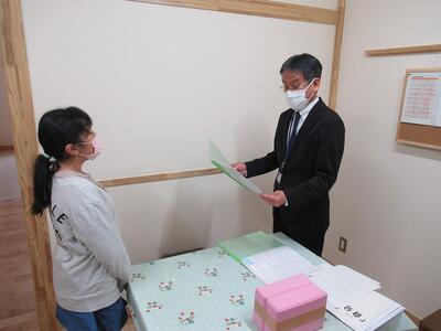 続いて、各学年の代表に校長先生から修了証書を渡しました。