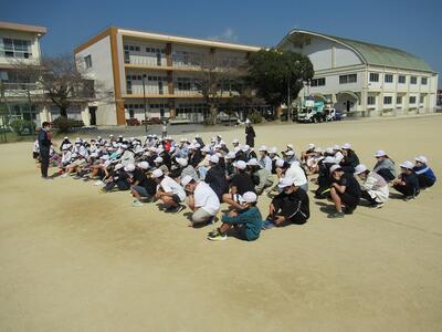 12月2日(金)に全校で避難訓練(火災)を行いました。運動場に集合し、消防署の方々からお話しを聞きました。