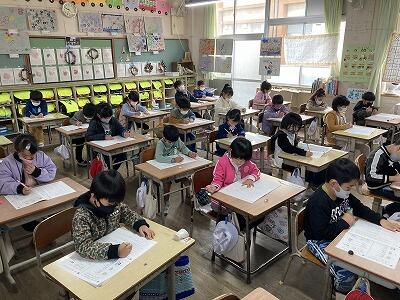 これまでの学習の成果を発揮しようと、一つの目標として練習をしてきました。どの学級でも、真剣な表情で問題に取り組む姿が見られました。