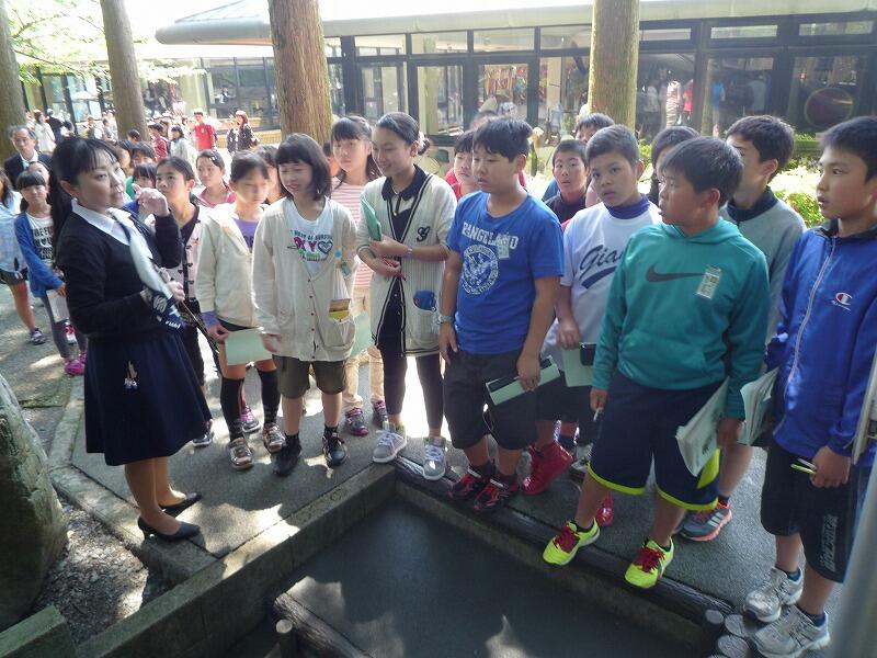 天候にも恵まれ、バスではバスガイドさんと楽しくゲームなどしながら最初の見学場所のかごしま水族館に到着しました。イルカショーを見たり、お土産を買ったりして大満足のようすでした。次は知覧特攻平和会館に向かいました。子ども達は展示されている写真や戦闘機などを見つめ、平和の大切さや命の尊さを感じていました。