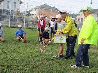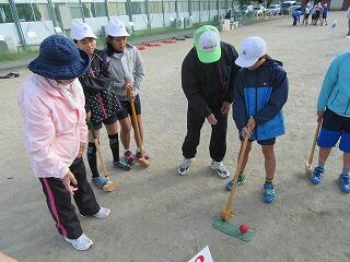 10月15日の土曜授業日では、南方の地域の方々とのグランドゴルフがありました。子どもたちは、初めてグラウンドゴルフをする子も多く、高齢者の方々に打ち方やルールを教えてもらいながらゴルフを楽しみました。子どもたちは、ホールを回るうちにコツをつかんだようで、打ち方がどんどん上手になっていきました。グランドゴルフが大好きになった子もたくさんいたようです。高齢者の方々ともたくさんお話をすることができて、楽しい時間を過ごすことができました。