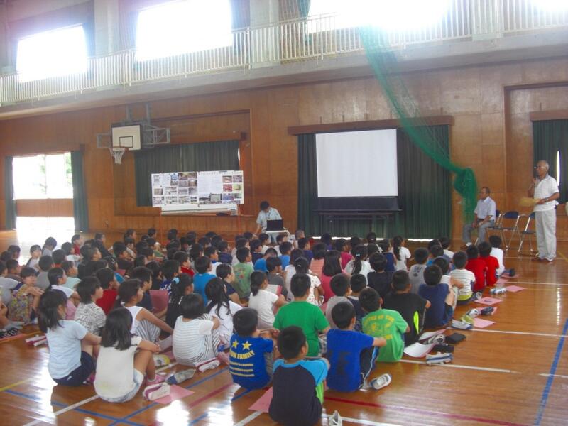 6月には市役所や地域の方を招き、金堂ヶ池について詳しく説明していただきました。昔と比べてどのような変化があるのかということや、外国からきた魚や植物の影響などについて写真を交えながら分かりやすく教えてもらいました。身近な自然について、更に深く学ぶことができ、興味が広がってきたようです。