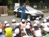 警察署では、警察のお仕事についてお話を聞かせていただきました。また、パトカーや白バイの説明を聞いたり、実際に乗ることもできました。「将来は、警察官になりたいなあ。」とバスの中で話している子どもたちもいました。