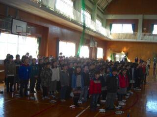 朝、6年生との「お別れ集会」で、4年間お世話になった感謝の気持ちを言葉と歌「風の道しるべ」にのせて伝えました。