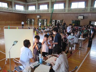 昨年同様、手指の消毒や自分でまぶたを下げるなどの感染対策を行った上で実施しました。子どもたちは緊張した様子でしたが、校医さんに進んで会釈をするなど素晴らしい態度で診てもらうことができました。
