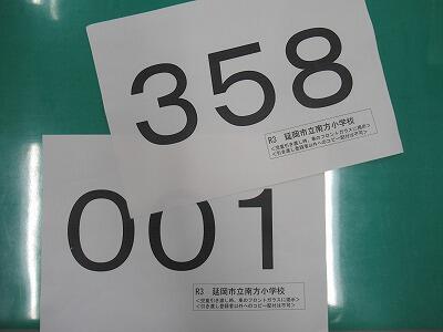 以下のような家庭ごとのナンバーカードを配付しましたので、お迎えに使う車に入れておいてください。