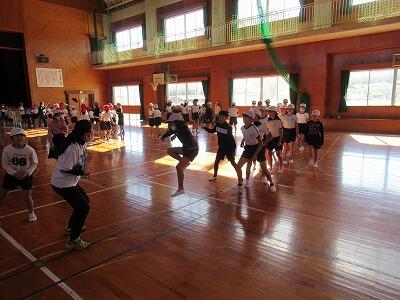 「はいっ!はいっ!」と大きなかけ声をかけながら学級ごとに練習をしており、とても楽しそうでした。体力向上とあわせて、学級の雰囲気をよくしたり友達関係を深めたりすることにもつながっているようです。