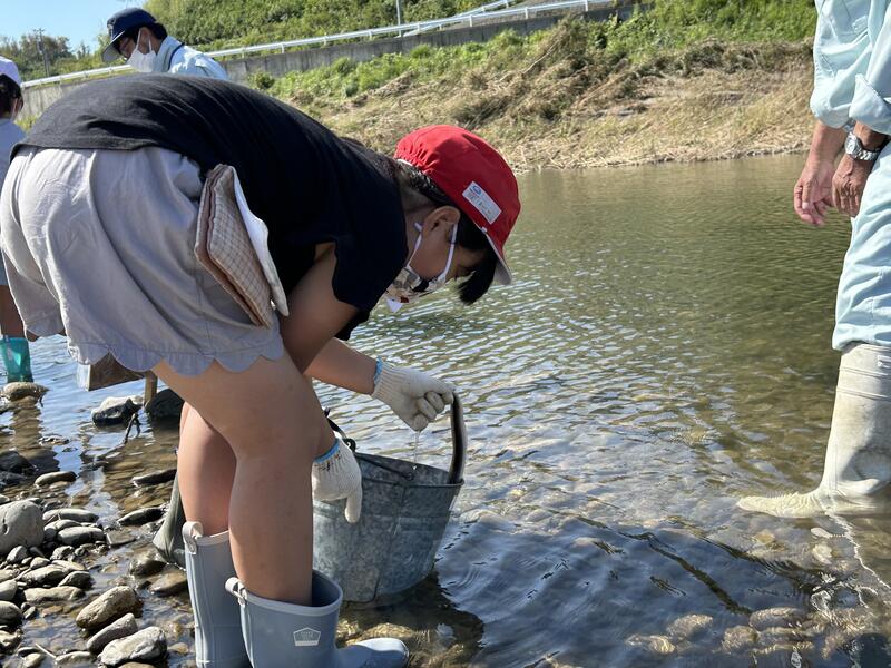 10月4日(金)に3年生が五ヶ瀬川漁業さんの協力で、うなぎの稚魚放流事業を行いました。初めての経験でみんな大興奮でした。