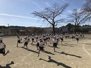 「よーいドン。」の合図でいきおいよく飛び出していった子どもたち。600メートルほどのコースですが、後半はさすがに息が「はあ。はあ。」ときつそうな様子でした。