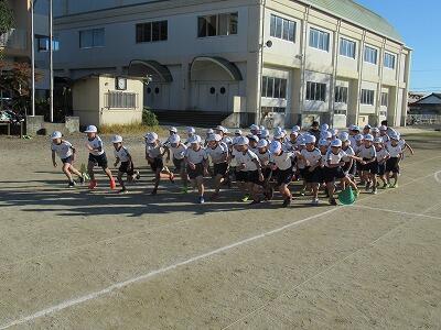 1年生にとっては初めての小学校での持久走大会です。運動場を3周走りました。冷たい風が吹く中でしたが、みんな一生懸命走っていました。