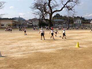 学級や学年でのレクリエーションでは、天気の合間を縫って運動場で遊ぶ子どもたち、