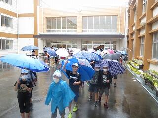 あいにくの雨模様でしたが、子どもたちは元気に登校し、久しぶりににぎやかな学校となりました。