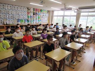 1校時の始業式(放送)では、6年生が2学期の目標について立派に発表しました。
