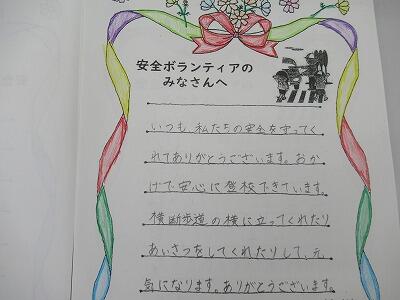 例年、安全ボランティアの皆さんを学校にお迎えして感謝集会を行ってきました。しかし本年度は、新型コロナウイルス感染拡大ため実施できず、かわりに児童が手紙を書いて渡すことにしました。