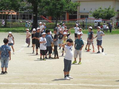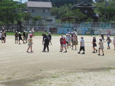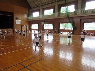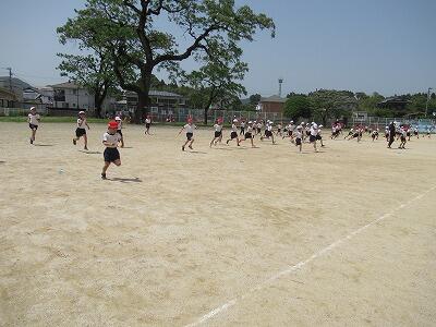運動場では2年生が走る練習をしていました。スキップから走る動きにつなげたり、シャトルランのように距離を決めて繰り返し走ったりしていました。元気な子どもたちの姿に元気をもらいました。