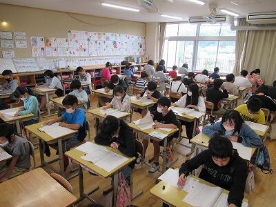 南方小学校の6年生も、この日を一つの目標としてがんばってきました。各教室では真剣に問題に取り組む子どもたちの姿が見られました(国語と算数)。