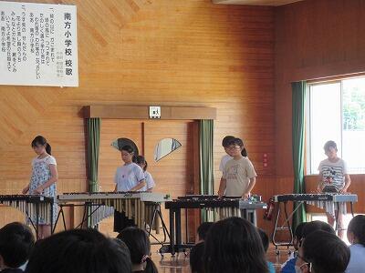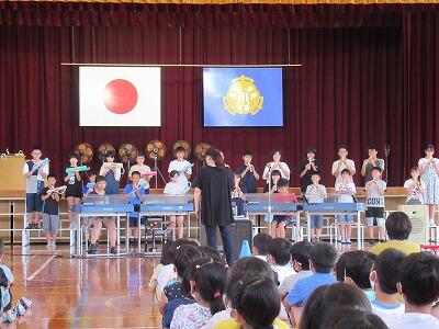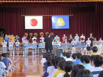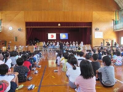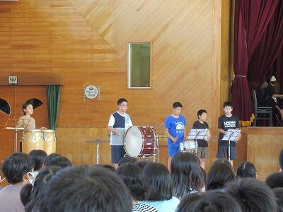 演奏を聴いた子どもたちは、「うまい」「みんながそろっていてすごい」「はくりょくがあった」「かっこよかった」「自分もやってみたい」など感激した様子でした。