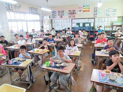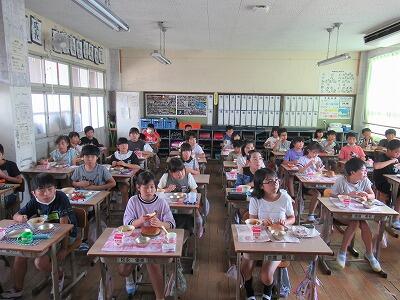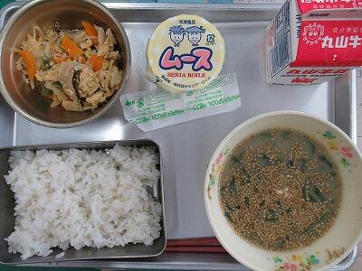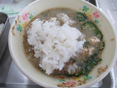 最後の写真2枚は今日の給食です。宮崎の郷土料理「冷や汁」でした。ごまとシソの風味がよく、夏にぴったりのメニューでした。