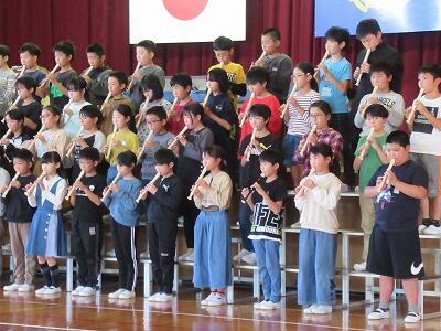 昨日、練習を重ねてきた4年生の音楽発表がついに行われました。(感染対策のため、3・5・6年生と1・2年生の2回に分けて演奏しました。)