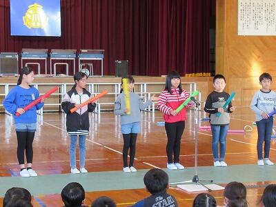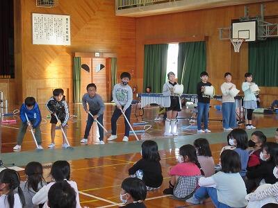 リコーダーによる「もののけ姫」「エーデルワイス」、ドレミパイプやストンプ、合奏「We wiil rock you」を披露しました。子どもたちの一生懸命な気持ちが伝わってくるすばらしい演奏でした。