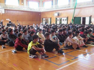 1~4年生の鑑賞教室を行いました(感染対策として、2回に分けて実施しました)。