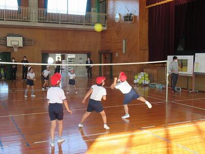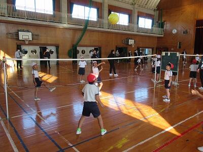 初めてバレーボールに触れる子どもたちが、楽しみながらルールや技能を身に付けていくために様々な工夫がされていました。