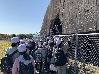 4枚目の写真は、宮崎空港近くにある掩体壕(えんたいごう)見学中の様子です。戦時中、ここは特攻隊の基地でした。
