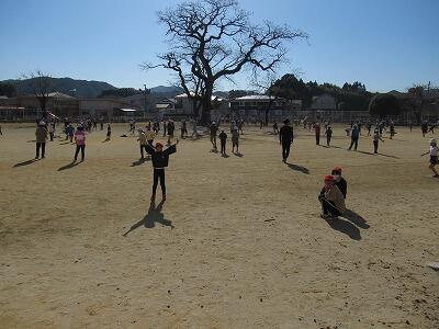 2学期最後の昼休みということで、かなり多くの子どもたち(と先生方)が運動場で楽しそうに遊んでいました。運動場に笑顔があふれていました。