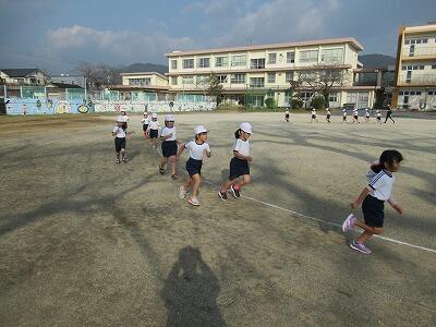 1年生にとっては初めての小学校での持久走大会です。運動場を3周走りました。冷たい風が吹く中でしたが、みんな一生懸命走っていました。