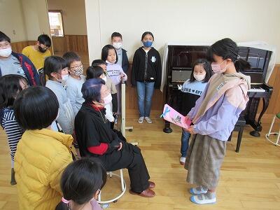ピアノをよく弾いている子どもたち何人かにお礼の手紙を書いてもらい、森脇さんに差し上げました。とても喜んでいただきました。