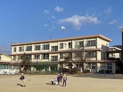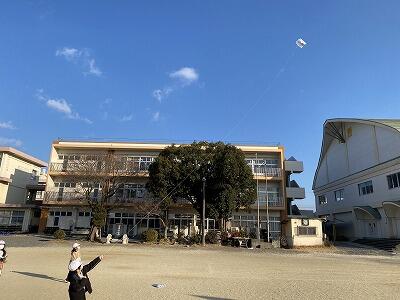 計画では、河川敷に行って地域の方や保護者の皆さんと一緒にたこ揚げ大会を行う予定でした。しかし、新型コロナウイルスの感染が拡大していることから、やむを得ず運動場で行うことになりました(クラスごとに行いました)。