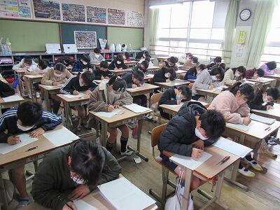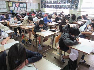 今日から一週間、これまでの成果を確かめる期間となっておりどの教室でもいつも以上の緊張感が感じられました。写真は5年生の各学級の様子です。