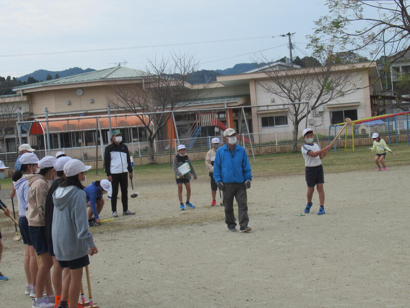 11月21日(火)5年生が地域の皆様とグランドゴルフで交流を行いました。道具の使い方やグランドゴルフのルールなど教えていただき楽しい時間を過ごすことができました。ありがとうございました。社会福祉協議会の方から新しい道具を寄贈していただき贈呈式も行われました。