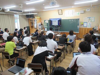 先週金曜日の午後には、延岡市教育委員会と学校をオンラインでつないで研修を行いました。今回は、授業で活用できるロイロノートというアプリの使い方を学びました。