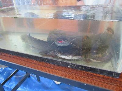 体育館に、ウナギやコイ、スッポン、エビ、イモリ、ナマズなどたくさんの種類の魚を展示してくださいました。担当の方が約2ヶ月前から魚を捕って準備されたそうです。