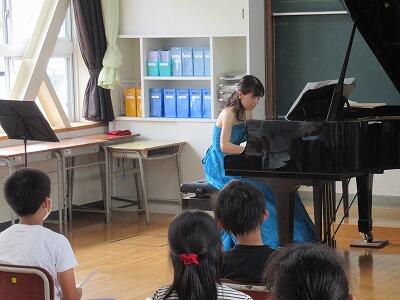 プロの演奏家3名(ピアノ・クラリネット)においでいただき、5年生3クラスが1クラスずつコンサートを体験しました。