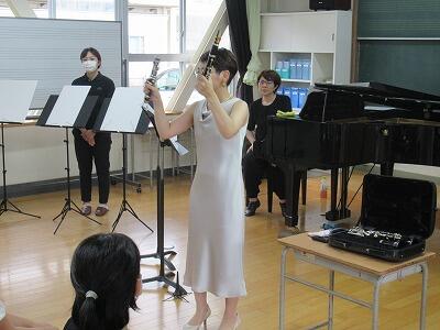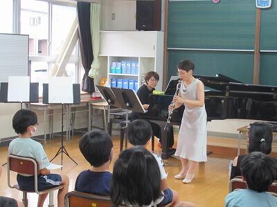 ピアノの仕組みを教えていただいたりクラリネットの分解を見せていただいたりと、楽器への興味を高める工夫もしてくださいました。もちろん演奏も素晴らしく、子どもたちは驚きの表情を見せていました。