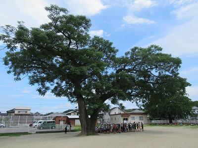 5年生は、明治40年に植栽されたというセンダンの木の下で行いました。日なたはとても暑かったのですが、木の下は涼しい風が吹いて快適でした。