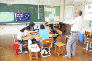昼休みには一緒にドッジボールをしました。オーストラリア式のドッジボールに児童全員が盛り上がり、たくさんの笑い声を上げて走り回りました。